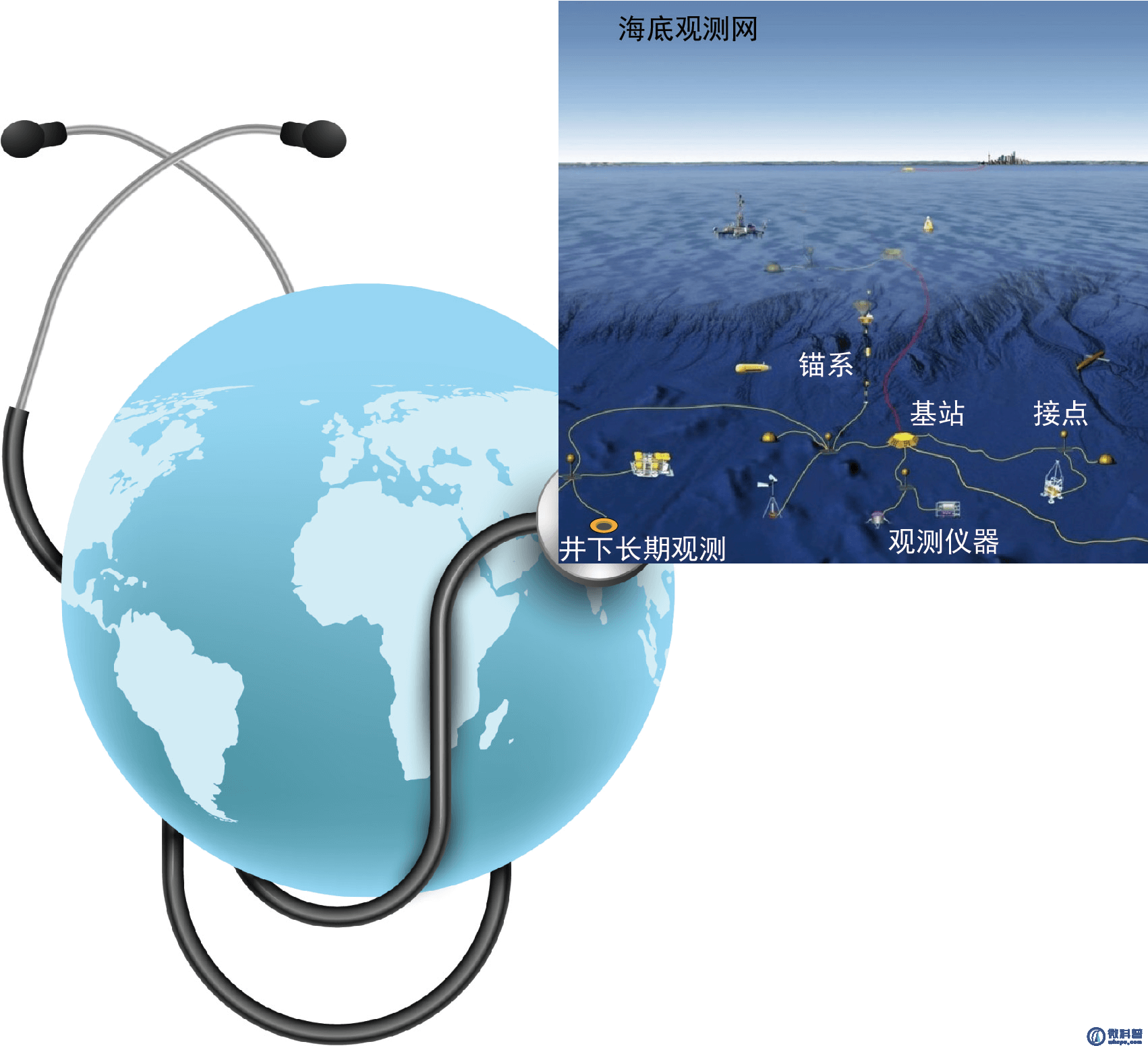要感知地球内部的跳动,就要借助于诸多精密仪器,例如分布式光纤传感器、温盐压仪、流速计和压力计等水文传感器,重力仪、磁力仪、地震仪、应力仪和应变仪等大地测量和地球物理传感器,井下长期观测系统以及海底观测网(图3)等。这些精密仪器就像是地球内部的“听诊器”,能够监测到地球内部的温度、压力、重力、磁力、应力和应变等各种参数的变化,为诊断地球健康状况提供可靠的资料支撑。海底观测网如同为地球铺设的“经络传感系统”,实时监测其“脉搏”(图3),了解地球的内部状态,拓展了人们对地球内部行为的认知。例如,通过井下长期观测,我们发现海水可以渗透到海底以下2500m的岩石中;还发现地球除了通过“怒吼”释放内部能量引起地震,还会相对安静地通过低频震颤(low-frequency tremors,简称LFTs)和极低频地震(Very-Low Frequency Earthquake,简称VLFE)等发生慢速滑移。