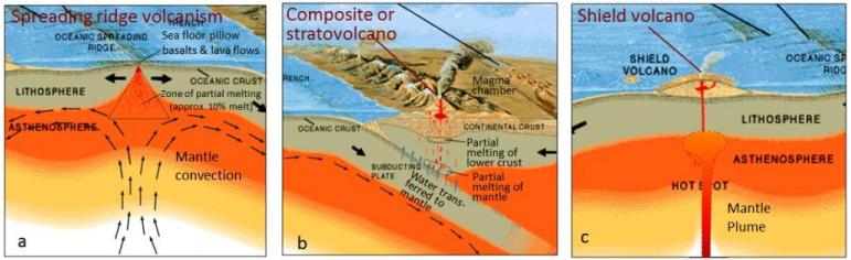 洋盆火山:形成于大洋盆地内,属于大洋板块内部的火山,是地幔热点喷发岩浆的地方。