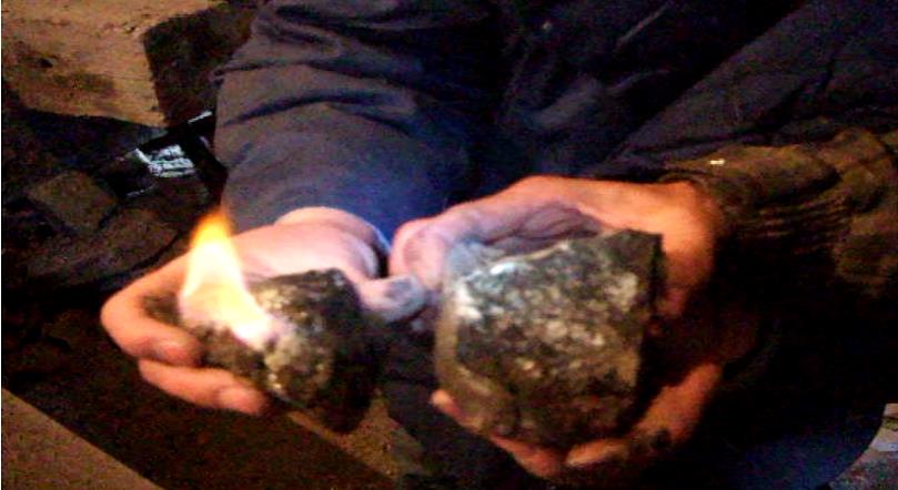 【我国祁连山冻土带钻获的可燃冰(图片来源于网络)】