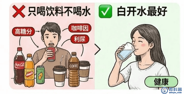 1. 误区一:用饮料代替白开水——很多人觉得饮料口感好、能补水,但含糖饮料会增加身体代谢负担,长期饮用可能导致肥胖、血糖波动,还会影响钙的吸收,违背卫健委“三减三健”(减糖、健康骨骼)的要求。