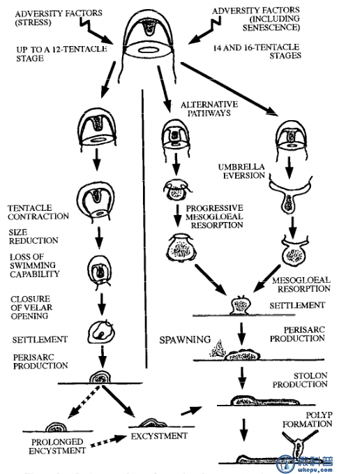 3. Piraino S, Boero F, Aeschbach B, et al. Reversing the life cycle: Medusae transforming into polyps and cell transdifferentiation in Turritopsis nutricula (Cnidaria, Hydrozoa). Biological Bulletin, 1996, 190(3): 302~312