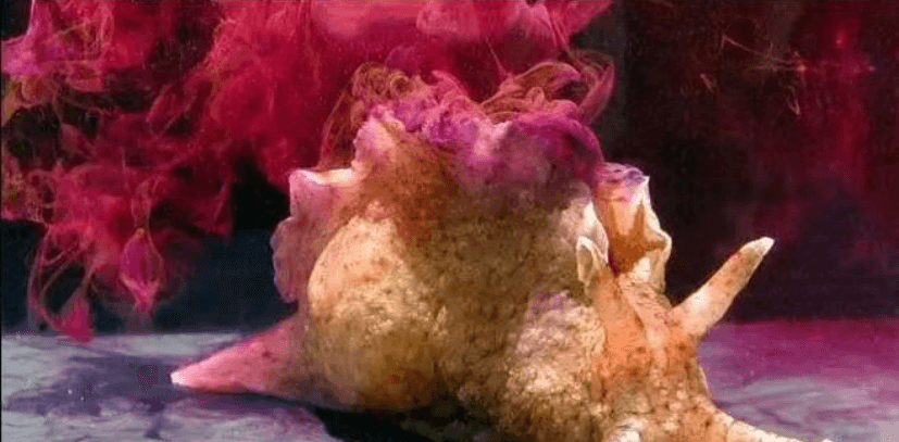 海兔外表看似柔弱无害,实则暗藏巧妙的防御机制。当遇到捕食者威胁时,它能迅速释放出一团浓密的“紫色烟雾弹”。这并非普通的墨汁,而是其体内两个特殊腺体——墨腺与蛋白腺——协同作用的化学产物:墨腺分泌紫色液体,蛋白腺释放白色粘液,两者混合后形成粘稠而具有刺激性的分泌物。这团紫色烟雾不仅能瞬间模糊捕食者的视线,干扰其攻击,更含有特殊的化学物质,可暂时麻痹攻击者的感官,使其误将烟雾当作可食目标。通过这种巧妙的化学防御机制,海兔得以在敌人迷惑之际迅速撤离,实现自保。