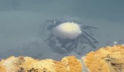 蟹类会冒险靠近池缘,捕食贻贝等生物。